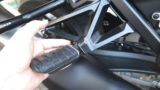 ということで、塗装終了。ゴムが乗る面は見えなくなるので、見える部分のみ塗装実施。 これで、タンデムステップをたたんだ時、シルバーだったのが黒になるので、全体に調和するはず。 ほぼタンデム乗車なのでたたむことは少ないけど。