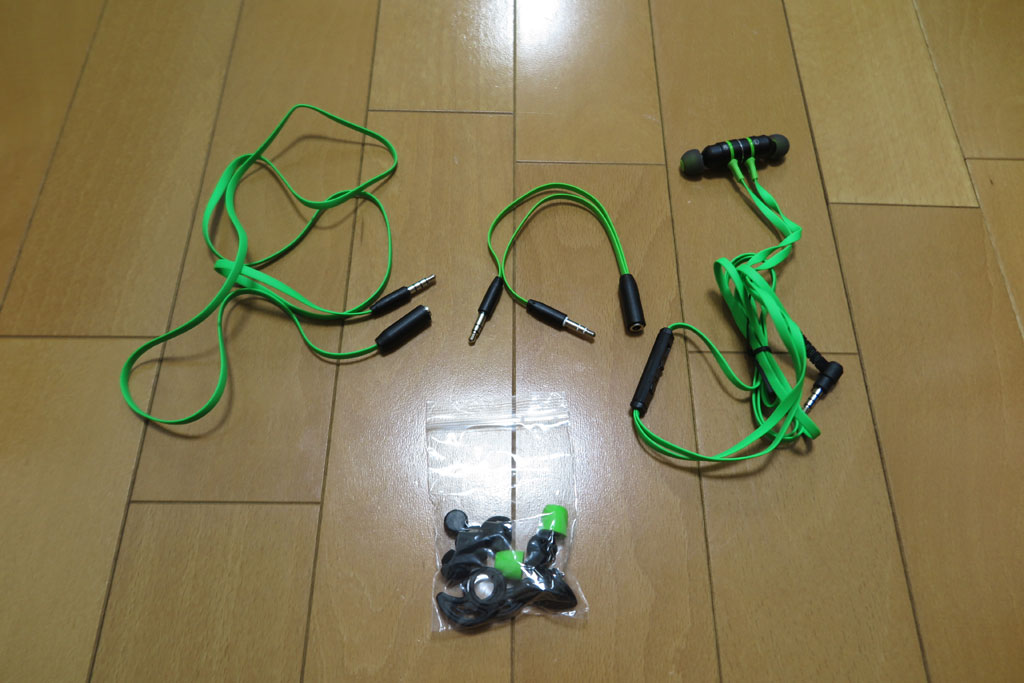 イヤホンタイプも購入してみる。ケーブル途中にマイクがある。うまく声を拾ってくれるのか心配。色はハデ目で目立ってよい。コードは平たくてきしめんタイプ。イヤホン同士が磁石でくっつくのでしまっておいても絡まりにくいようだ。各種変換ケーブルがそろっておりいろいろ接続可能。