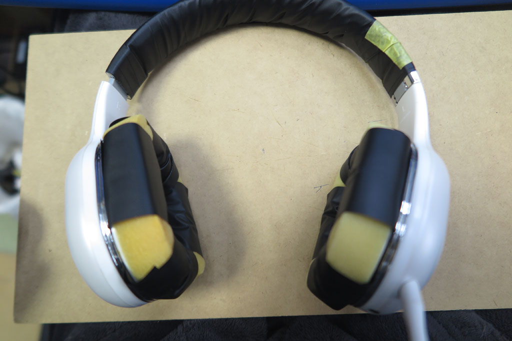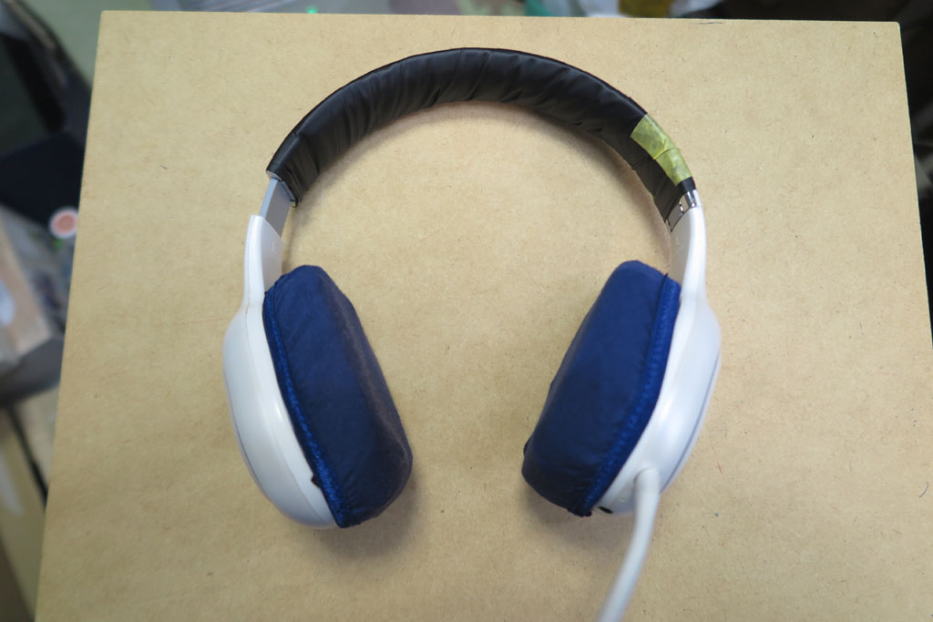 そのあと、イヤーパッドカバーを上にかぶせる。これで不細工な配管テープは隠せる。