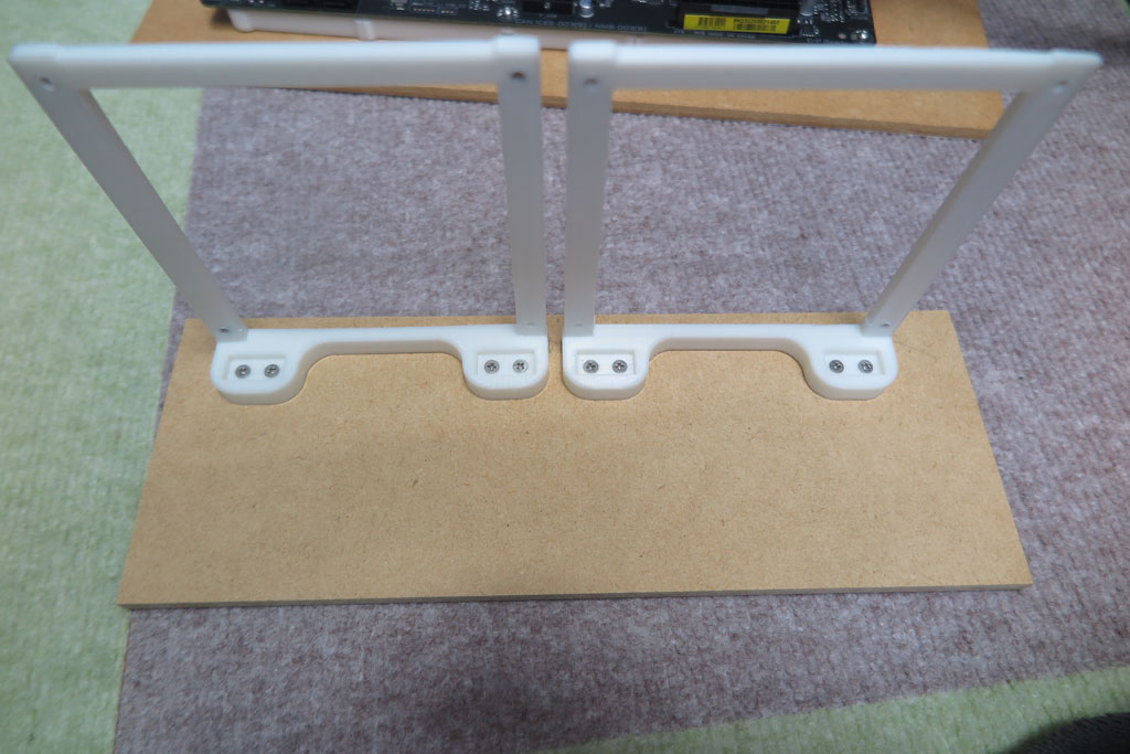 マザーボードのMDF版に一緒に乗せたかったが、大きさの関係でどうやら取り付け不可。 あきらめてMDFの端材に取り付けることとした。 取付用の枠を3Dプリンタで作成して、準備完了。