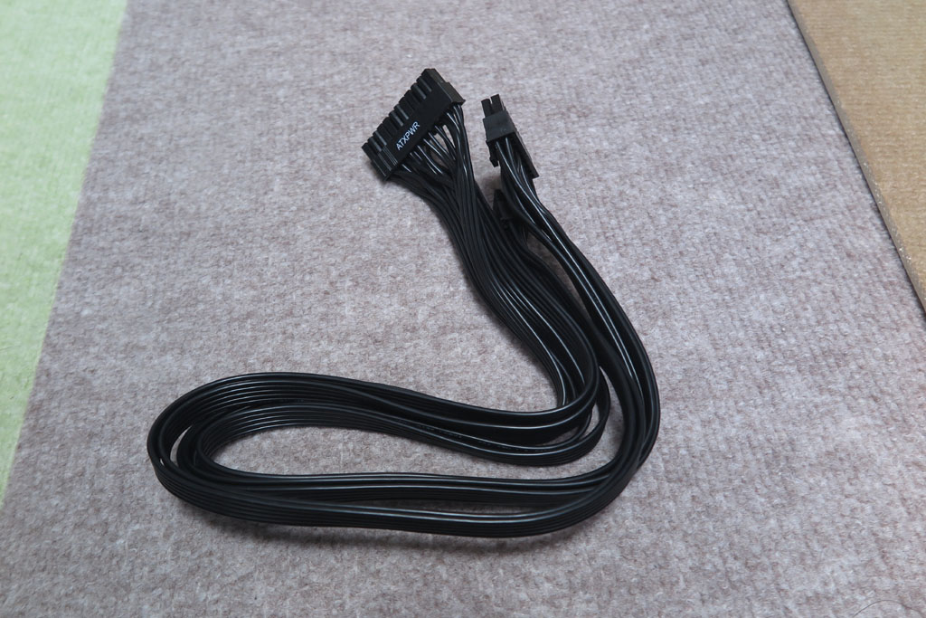 こちらをマザーの大きなコネクタに差し込む。ピン数が多いので差し込むには力がいる。 ラッチが引っかかるようにしっかりと押し込んでやる。狭い場所なので一度差し込むと抜くのは困難。 ケーブルの配置にも気を使っておく。