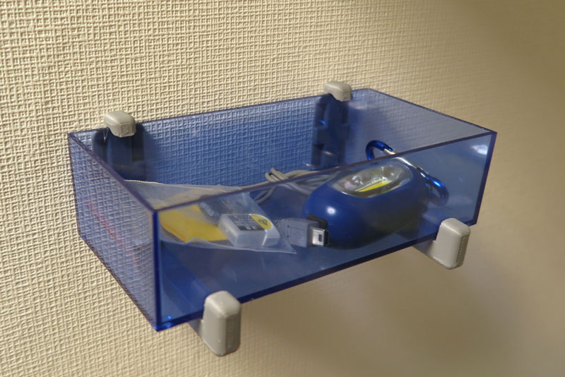 壁へのフック取付が成功したので、もう少し大き目なものにチャレンジ。 100均のアクリルケースがあるのだが、これを壁に取り付けてみよう。
