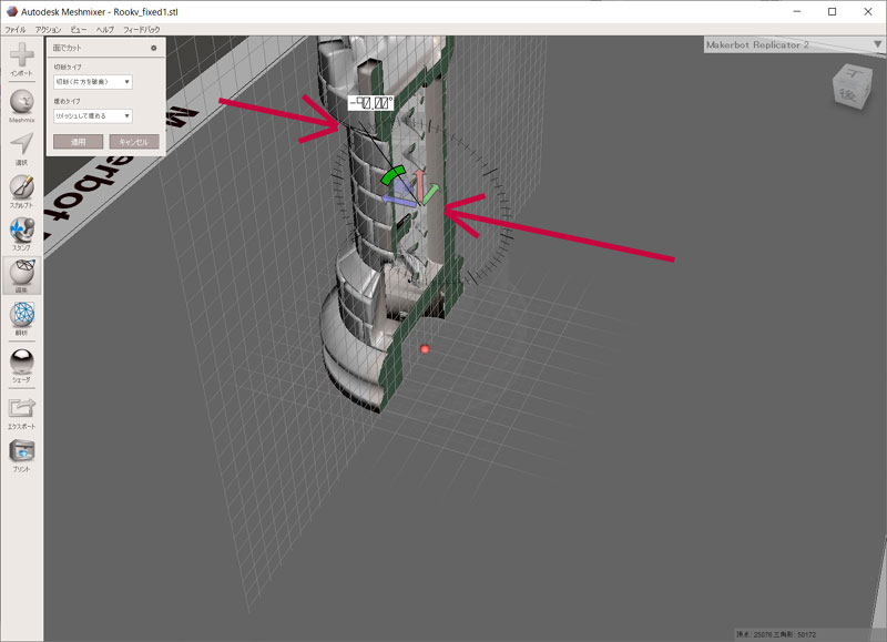 stlがしっかりできていない場合に自動修復機能がある。おかしな切断などをすると、3Dとして成り立たない?データになることがあるようで、自動修復でうまく復旧してくれるようだが、壊れ方によってはもっとダメになる。
