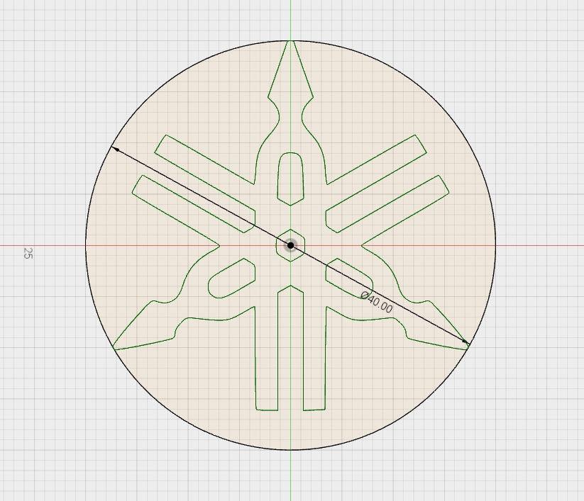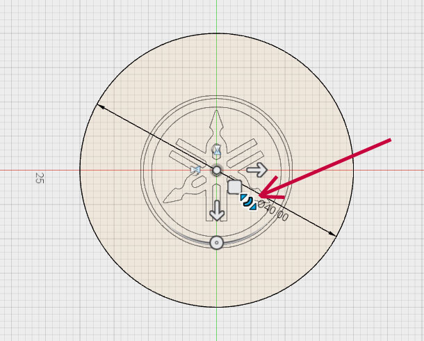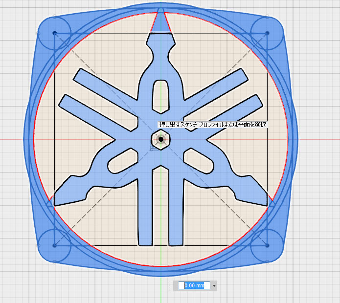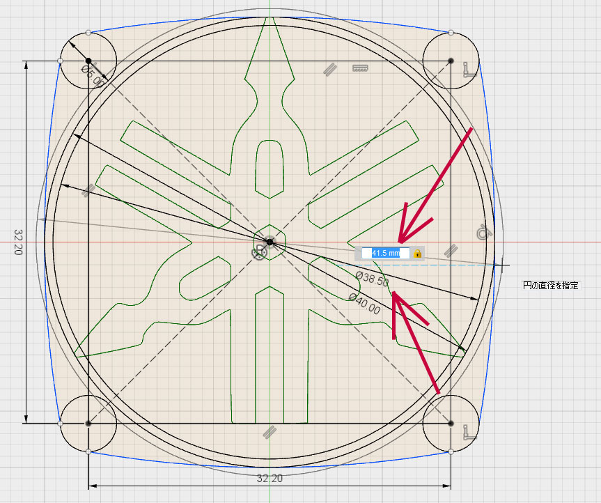 では、最後に中心を使って38.5mmの円と41.5mmの円を作成。これをファンガードのフチにしようと思う。