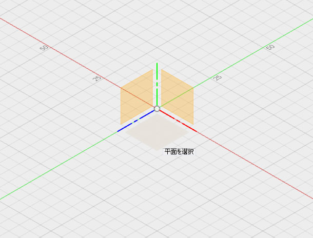 すると、どの平面に作成するかを選択する状態となるので、作成する平面を選択。 3面あるがどれを選んでもぐるぐる回すと一緒なので、好きなので良いと思う。Fusion360のZ軸設定をしておけば、見た状態がそのままスライサーに流れるので、一応上下などあれば見た目を合わせておくとよい。