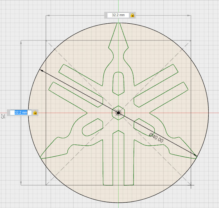 では、最後に中心を使って38.5mmの円と41.5mmの円を作成。これをファンガードのフチにしようと思う。