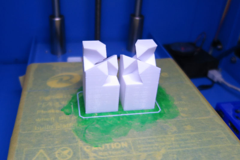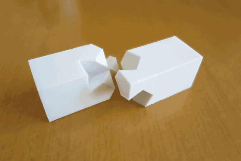 8mm角で設計したので、出てきたものは小さめ。でもきちんと河合継手の形が見えている。 しかし白のフィラメントは写真泣かせな色だな。