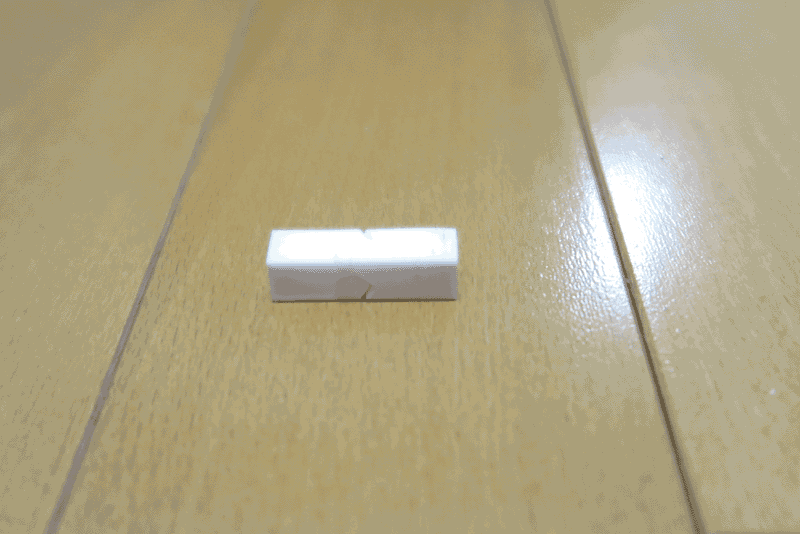 次に上面正方形の半分の三角を持ち上げるか削るかして、三角柱を作る。高さは正方形の一辺と同じとする(8mm)