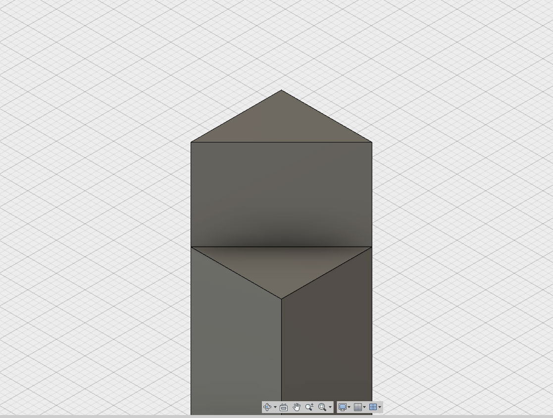 これで、三角柱が斜めにカットされた状態で出来上がった。(三角錐)このカットした面でいろいろスケッチを行うので、 この面はこれからも重要。