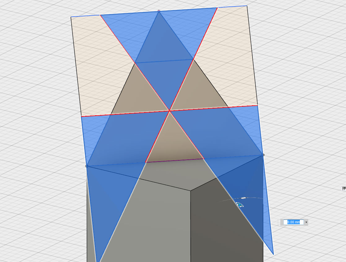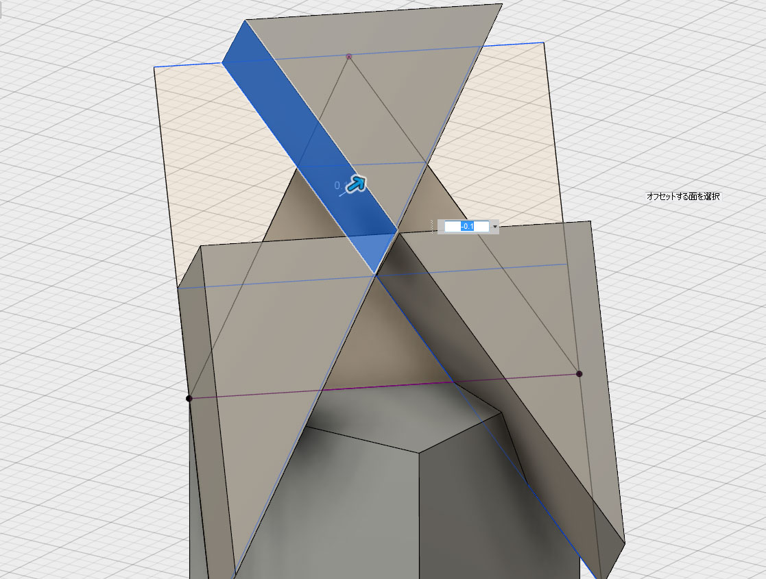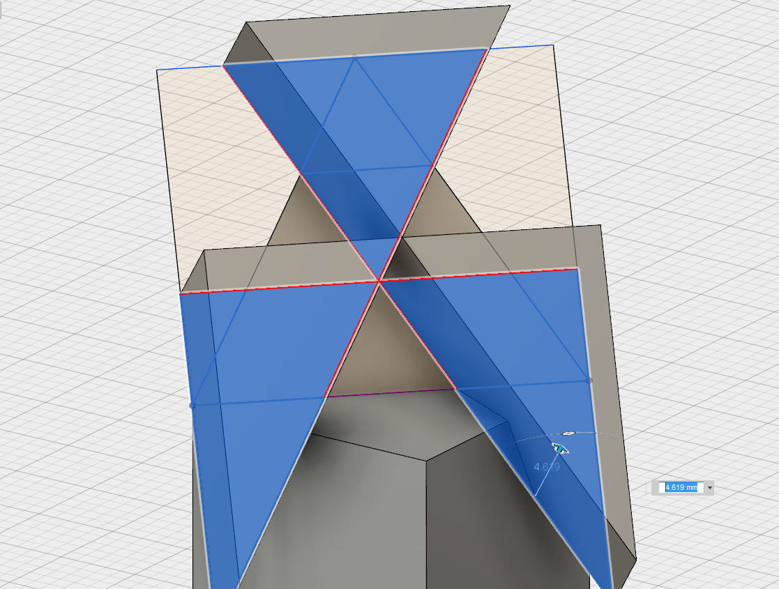 面を選択したら、4.619mmほど押し出す。8mm角の場合には4.619mmとなる。 何故かと言うと、こんな感じ。
