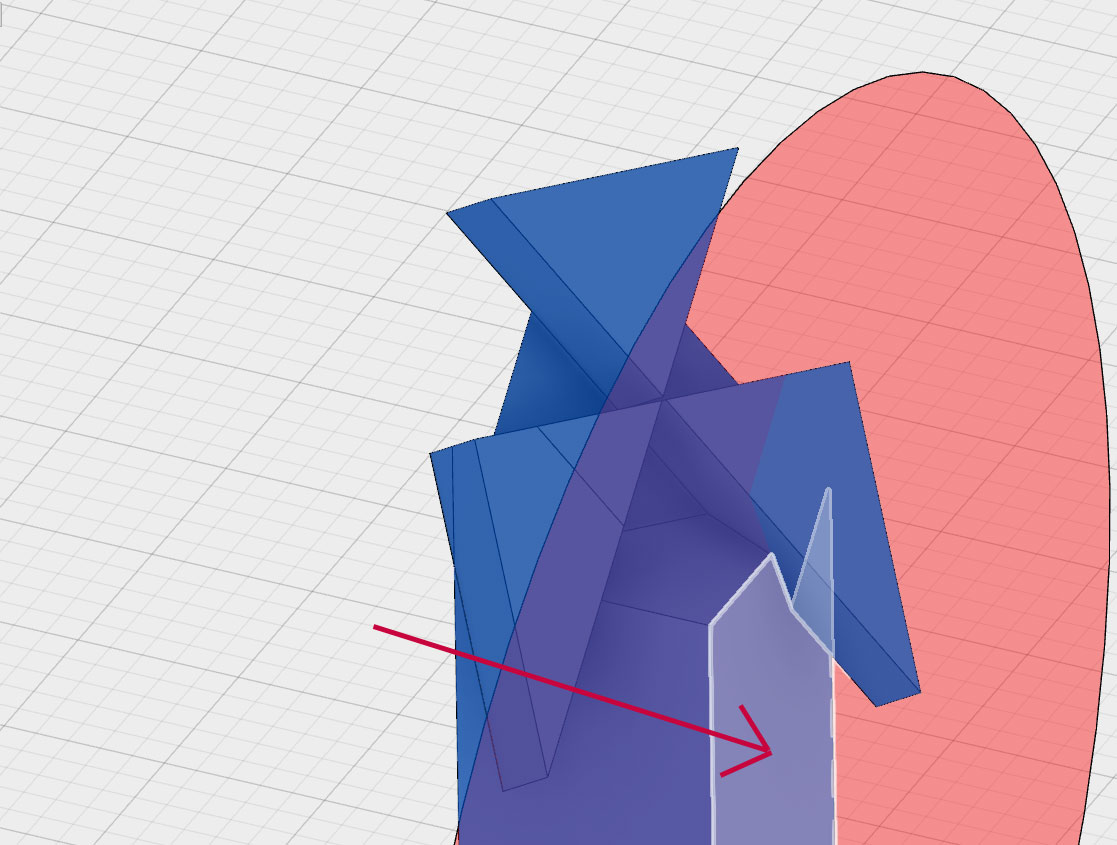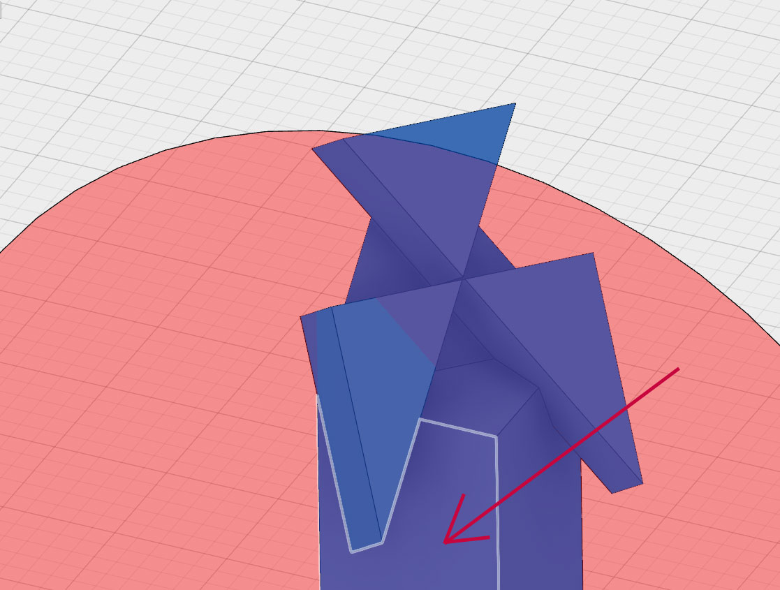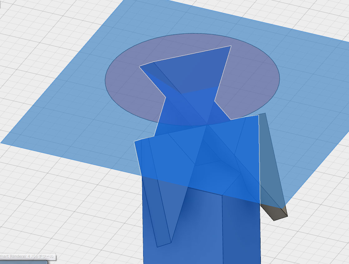 ボディを表示させて、作成-押し出しで、図の箇所を選択する。風車っぽい。