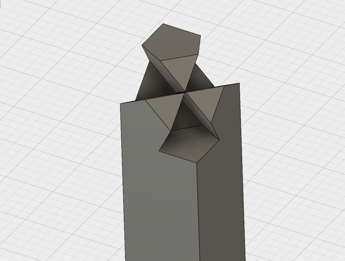 次に上面正方形の半分の三角を持ち上げるか削るかして、三角柱を作る。高さは正方形の一辺と同じとする(8mm)