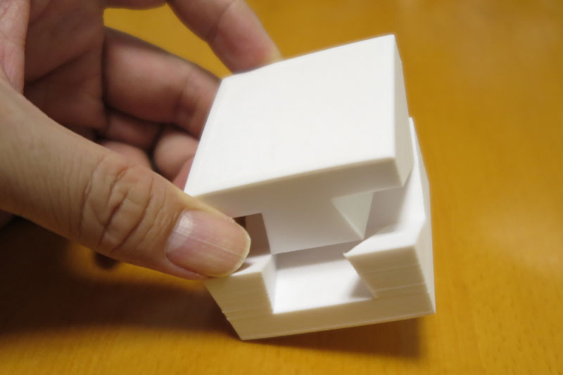 うまく滑り込ますように差し込まないと綺麗にハマらず、不思議な形をしている。 それぞれの幅がギリギリのサイズになっているのだろう。