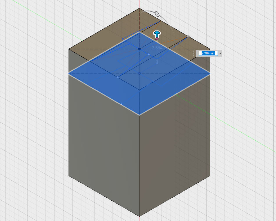 同様に上側にも押し上げる。上面にピッタリとなる2.384ほどの高さとする。