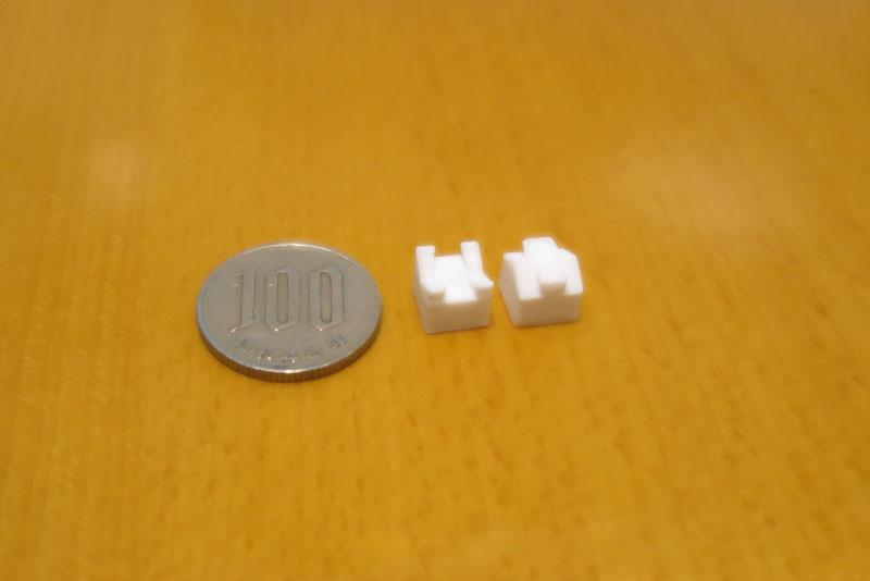 かなり小さくなってしまったが、なんちゃら継手が完成。これでも一応機能し、正しく差し込まないと組み付けられない。 指で持てるギリギリだな。