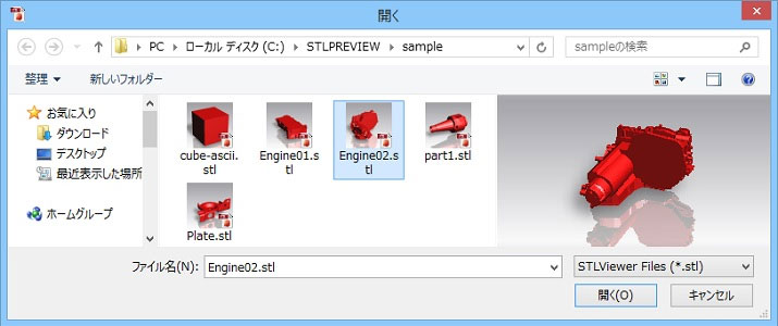 このファイルをエクスプローラで表示する際に、stlファイルの3Dモデルで表示できるソフト(dll)があったので、入れてみる。