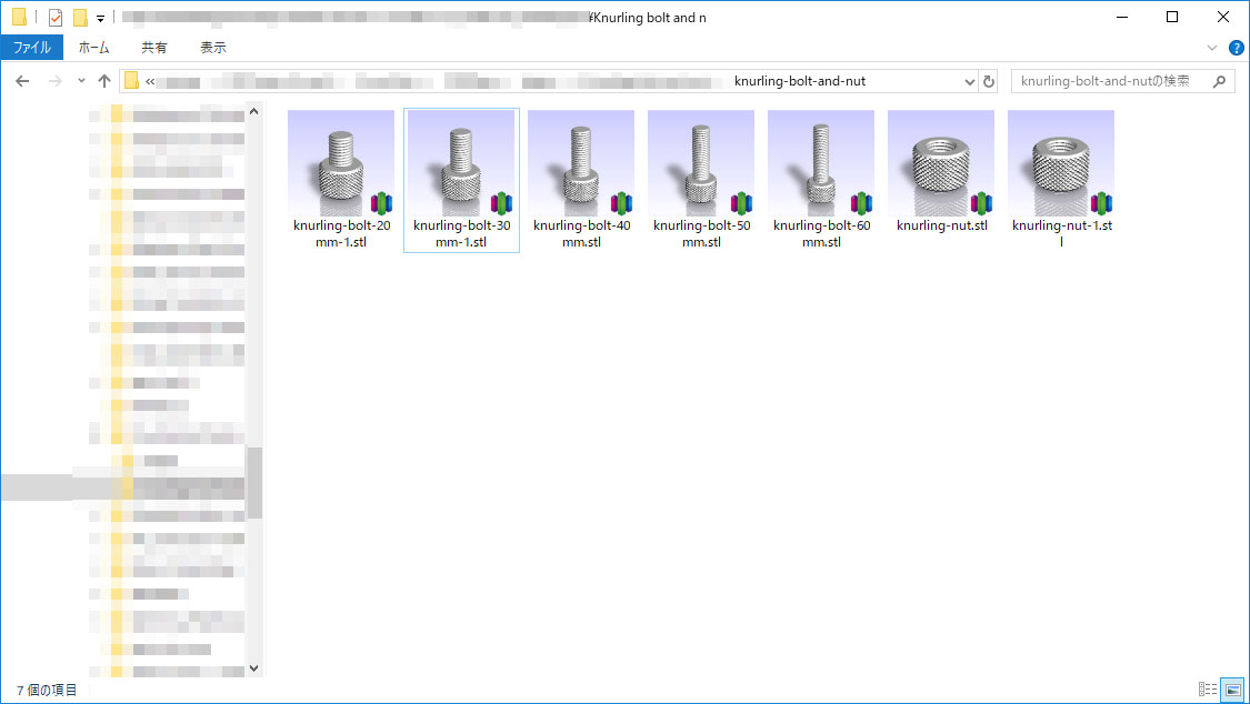 では、そのままエクスプローラでstlファイルがあるところを覗いてみる。表示を詳細にすると、通常の関連付けされたアプリのアイコン表示なのだが、 表示を中アイコン以上にしてやると、アイコンの中に3Dモデルが表示される。便利。