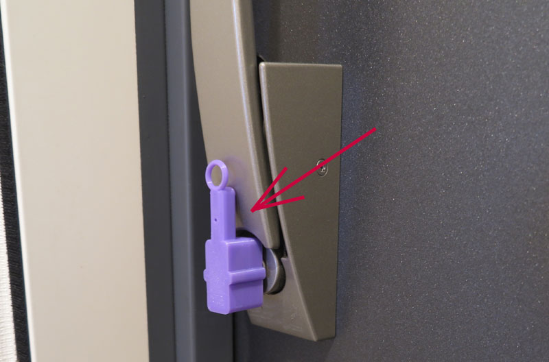 まずは、錠のつまみにカバーをかぶせる。先っぽに輪っかのついた新型だ。