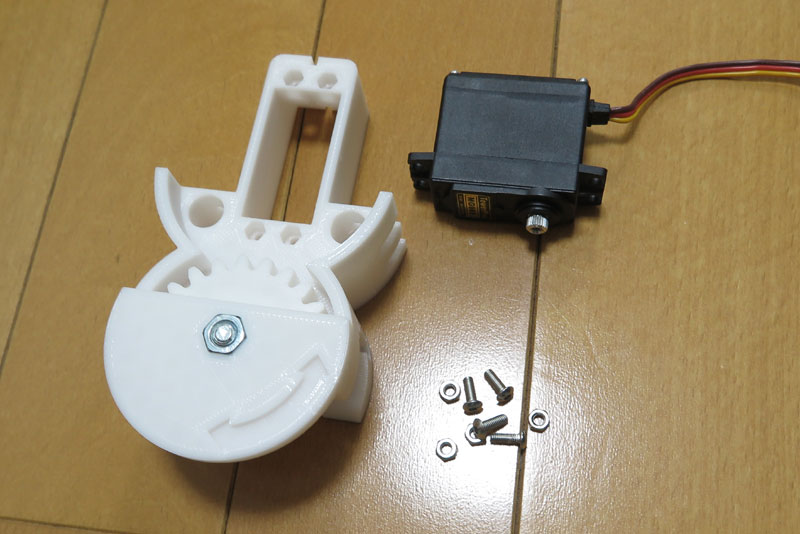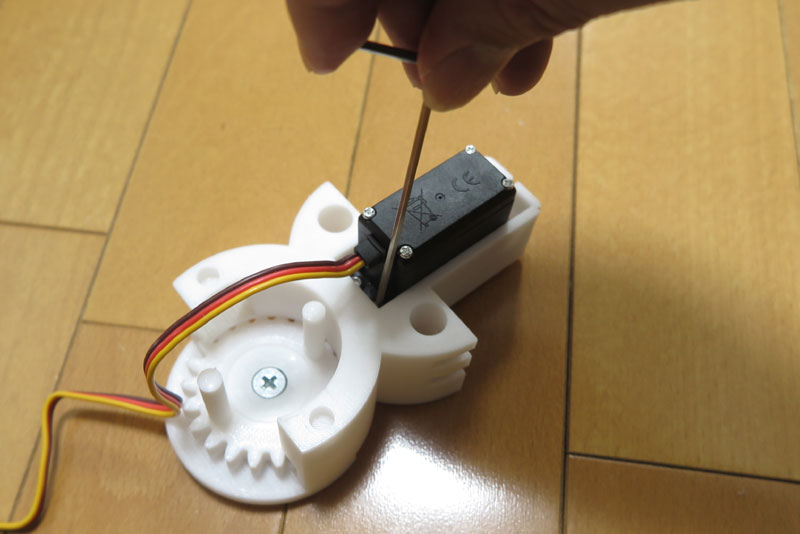 次にサーボの取り付け。サーボは4つのM3ねじで固定する。
