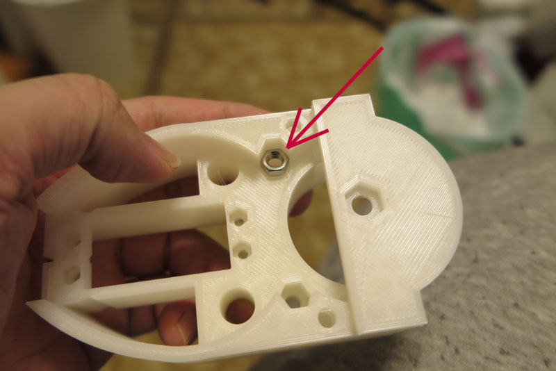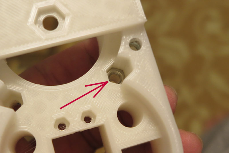 ナットを入れる場所は、かなりギリギリ。手で押し込んだぐらいじゃ入らいないサイズ。 もう少し余裕を見たほうがよかったかな?