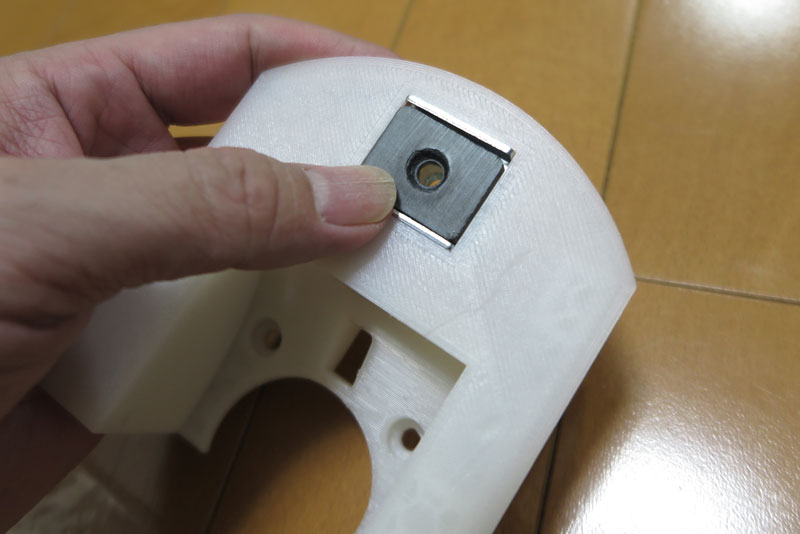 次は台座側の組み立て。こちらには、磁石固定箇所を用意してあるので、そこに磁石をはめ込んでみる。