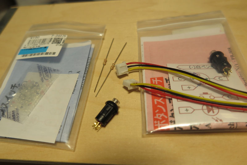 最後に天板にスイッチ付きのLEDを取り付ける。穴に溝が入れてあるので、ここに配線を通してやる。 スイッチ自体はバネで引っかかるようになっている。