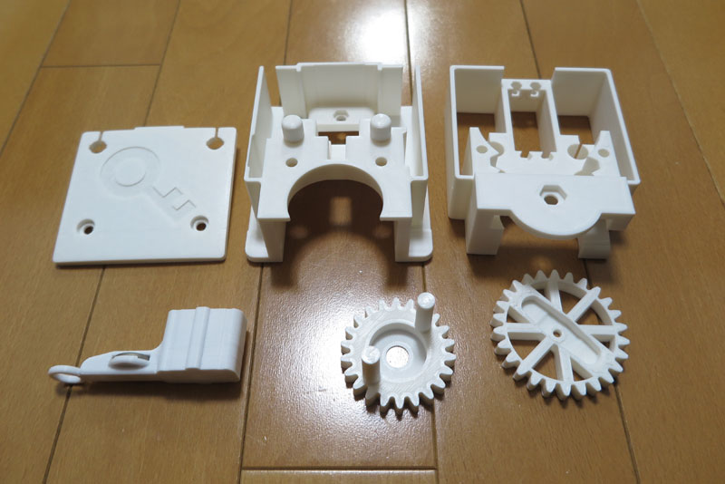 設計変更したスマートロックをとっとと印刷出力する。とはいえ、結構な時間がかかるので、 何日かかけて出力する。土台、シリンダー部、上蓋、ギア、と出力。ノブ回しのレバーは前回のをそのまま流用。