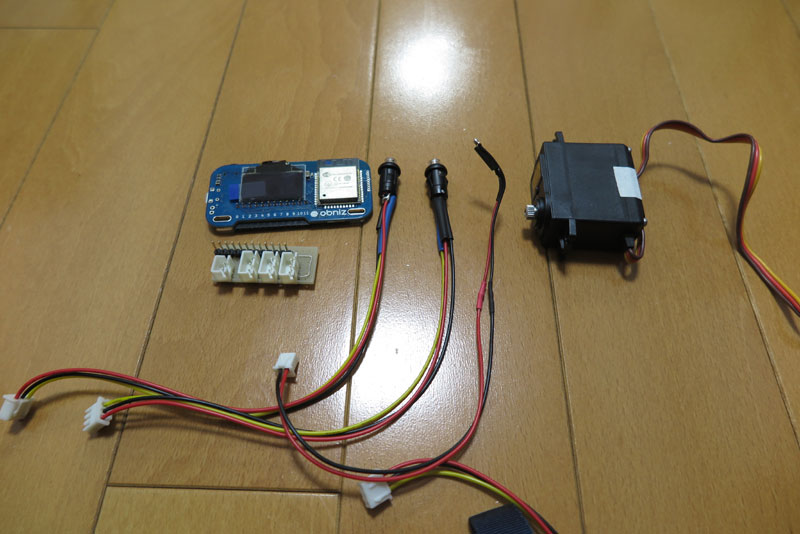 obnizからサーボやLEDなどに配線をしているが、obnizとの接続部分が、今一つ気に入らない状態。 オスピンに配線をつないでいるのだが、かなり丸出しな感じなので、よくないと思う。 そこでもう少し改善を図ってみようと思う。