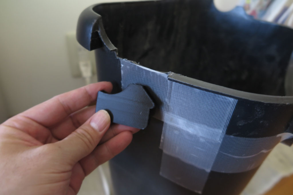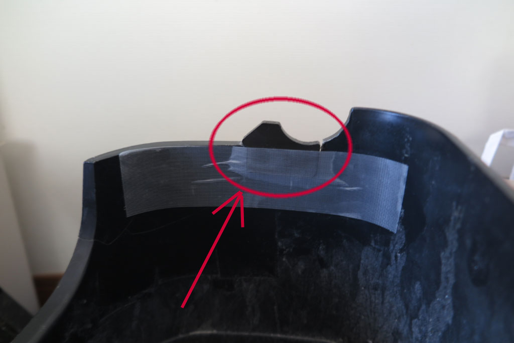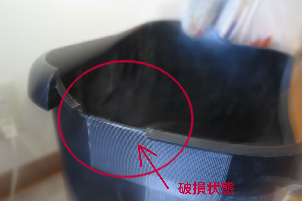かなり音がうるさいが、その分強力でガツガツと裁断してくれる。ただ裁断後のごみ箱となる下の箱が経年劣化のせいか破損してきており、ひびがそこら中に入っている。なのでガムテで補修しながら騙し騙し使用していたが、今回重要箇所が破損してうまく使えなくなってしまった。