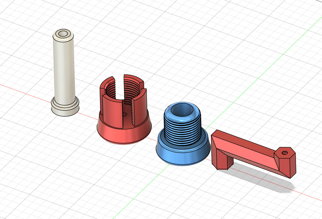 スプールの内側の穴を通すことを想定し、50φの管とそれを連結するM40のネジを作ることとした。オスネジとメスネジを作って印刷してみる。