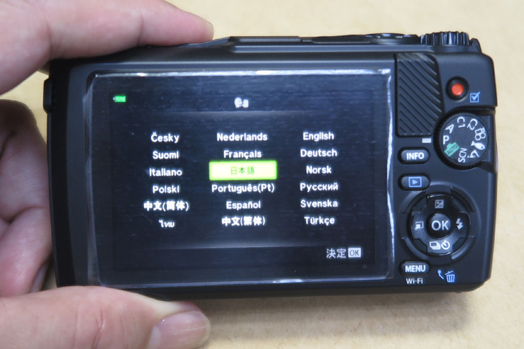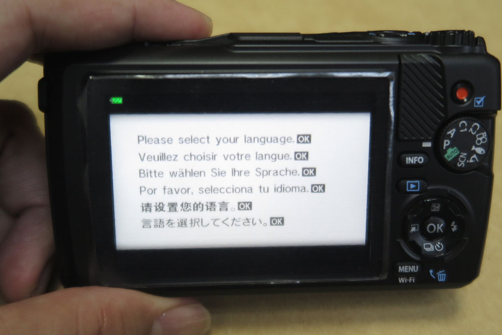 電源を入れると、最初に言語選択画面となった。確かに各種案内表示をどの言語で表示するかを決めないと操作者が理解できない。OKを押して進む。