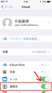 このページの「連絡先を移行する」をみて、連絡先を引っ越す。まずは現在のiPhoneの状態。 「設定」から「メール/連絡先/カレンダー」へ移動すると、アカウントの先頭にはicloudが表示されている。 デフォルトアカウントはicloudのようなので、それをクリックすると、icloudへの同期設定が出てくる。 ここで連絡先の同期を確認するがすでに同期となっているので、どうやらicloudには連絡先はアップされているようだ。