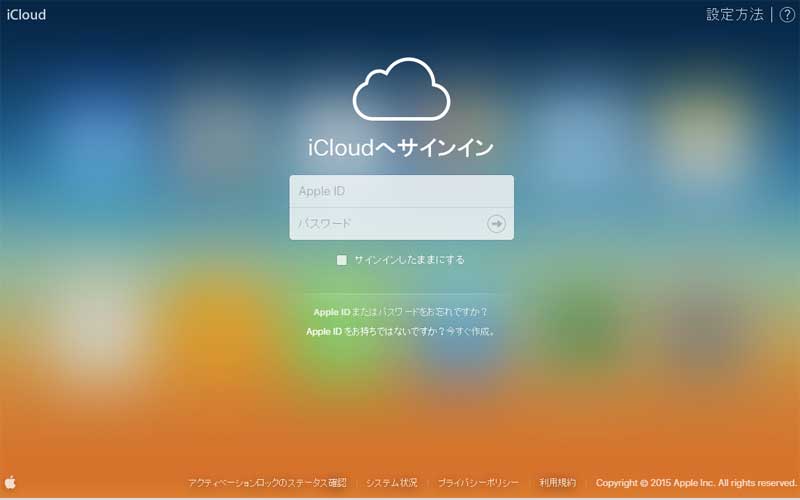 では次にPCからicloudにログイン。今までやったこと無いけど、PCからも入れるんだな、知らなかった。 icloudのアカウントでログインを行い、PCからicloudに入る。