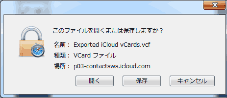 すべての連絡先を選択後にvCardで書き出ししようとすると、なぜか何も起こらない。 何度かチャレンジするもうまくいかないので、ブラウザを変えてチャレンジしてみたところ、Safariなら出力が出来た。 でもSafariは文字のエンコードがうまく出てくれない。とりあえず出力させてファイルの中身を覗いてみると、 文字化けは無く出力されているようなので、一安心。windowsPCにはやはりやさしくないAppleシステムだ。 しかしWINDOWS7+IE11ではうまく出来ないのだろうか?