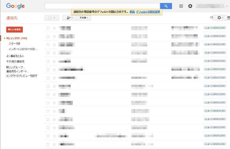最初icloudの出力ファイルをそのまま読ませてみると、エラーとなった。どうもファイル名にスペースが入っているのが怪しいと思い、 ファイル名をスペースのないものに変更し、もう一度読ませてみると、うまく取り込めた。若干の一手間を入れなきゃいけないようだ。 ひとまず連絡先の移行はWEB側は出来た。