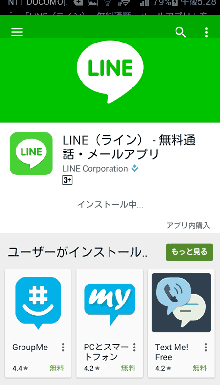 家族との連絡は、主にLINEなのでこれは必須。iPhoneがWiFi環境にあれば問題なく使用できるが、 出かけると使えなくなるのでどうにかする必要がある。というか引っ越すしかないだろう。 とりあえず新しい携帯のほうにLINEアプリを入れる。playストアで検索してインストールを実施。
