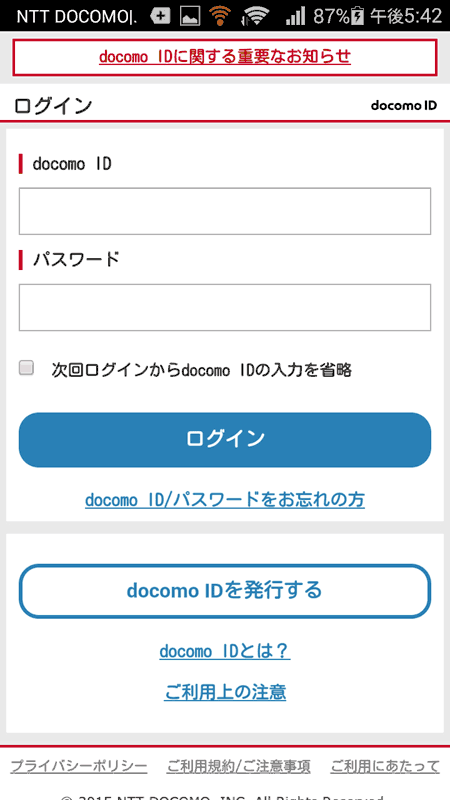 これで終わりかと思いきや、年齢確認の画面になった。どうやって年齢確認なのかと、「年齢確認する」ボタンを押してみると、 docomoIDの入力を求められた。どうもdocomoキャリアなので、docomoの登録情報から年齢を確認するようだが、 キャリアはdocomoでも、実際にはIIJでの契約なので、docomoIDがなく、入力できない。まあ年齢認証は不要なので、 ここはスキップする。