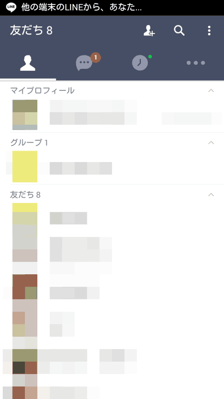 これで入力は終わったようで、同期が始まった。しばらくすると見慣れたLINEの画面になった。 どうやら引越しが終わったようだ。「トーク」を見てみるとばっさりと履歴が消えていた。 履歴はちょっと残して欲しかったな。消えちゃうということは、トークの履歴はセンターではなく端末側に残っている情報なのかな。 すこしトークで送信してみて相手に届いたので確認完了。これでLINEの引越しが終わった。