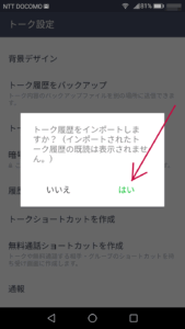 これでLINEに戻り、先程同様にトーク設定を開いてみると、今度は「トーク履歴をインポート」が表示されている。 ではこれを選択する。