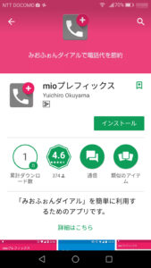 では、その他アプリを入れていこうと思う。 まずはIIJmioに関するアプリ。「みおふぉんダイアルアプリ」これはIIJmioで電話するときは電話の頭に何かを付けてダイアルすると、通常の電話ではなく、みおふぉん電話となり安く通話できる。なので通常の通話アプリを使わずに、このアプリを使って電話をかけると、安い通話を自動でダイアルしてくれてかけてくれる。 通常の通話と変わらず使えるので、これを使いやすいところに置いておけばこちらで電話をかけるので、 自動で安くなる。