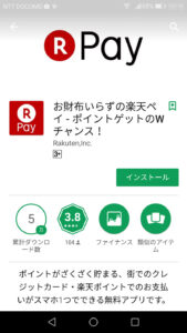 楽天ペイ。最近楽天が始めたっぽく、初利用でポイントが付くキャンペーンなどがあるので、入れてみる。 でも何をどうやって使うのかよくわかってないので、これから調べておかなきゃ。iPhoneでのApplePayが人気となり、 いろんなペイ!がはやりだ。AndroidPayも始まるよう(始まってる?)で、おサイフ携帯とは違ったいろんなスマホによる 決済手段が乱立してきそうだ。