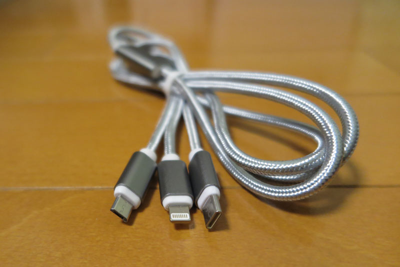 とりあえず、便利そうなのでこいつを購入。グレーとのことだが、写真ではネイビーっぽいのが気に入った。 実際はどんなだろう。ちなみにMFI認証の文字はどこにも書いてなかったので、LightningでのiPhone充電はできないかも。