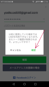 引き継ぎ最後の確認ボタンが出てくるので、意を決して「確認」を押す。これを押すと旧端末側のLINEは使えなくなるはずだ。 前回の引っ越しではすぐにだめになったと思うので、一瞬で設定が飛び交うようだ。