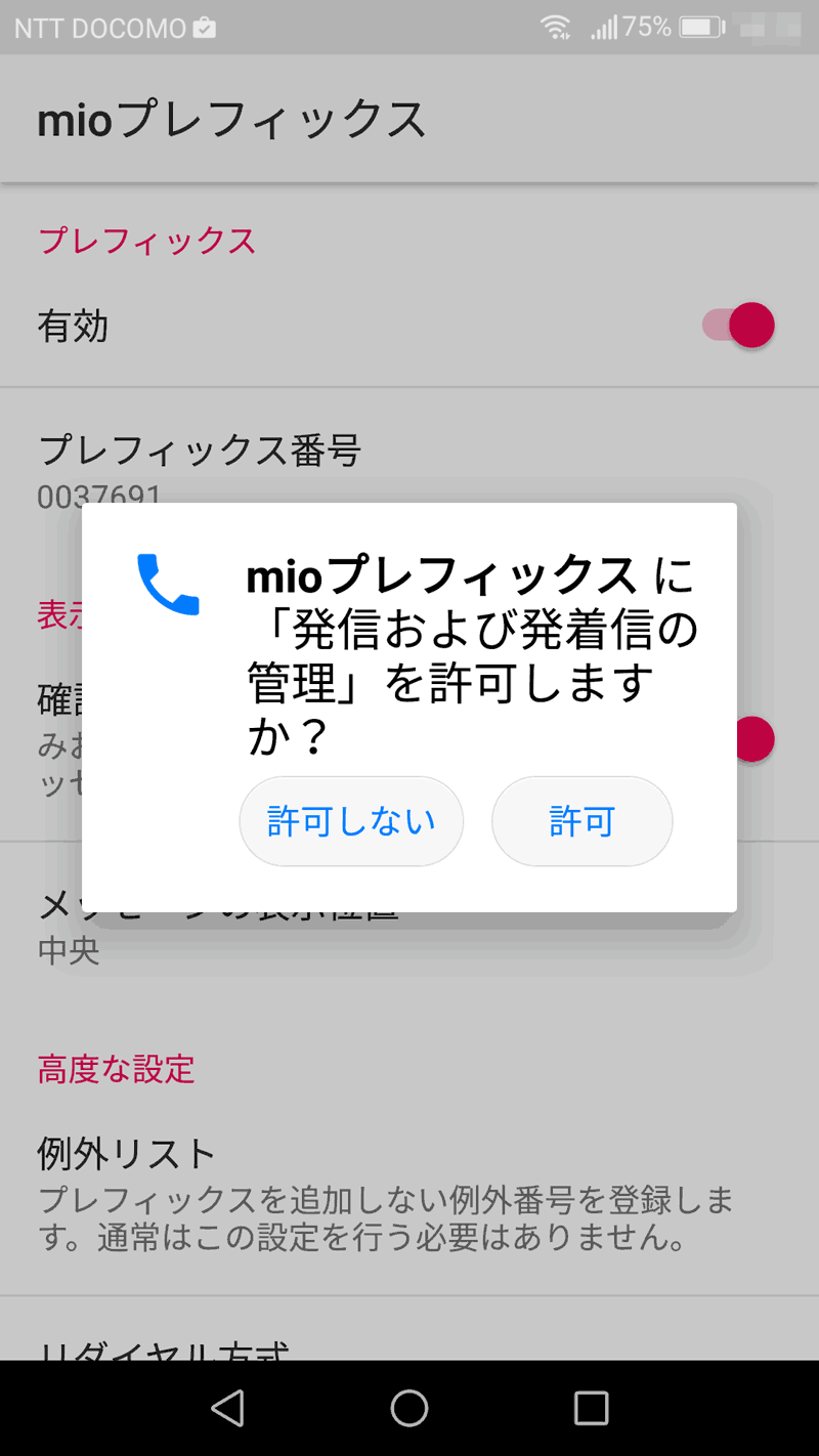 みおふぉんダイアルアプリを探していると、評価の高いIIJmio向けアプリがあったので、落としてみた。 みおふぉんダイアルアプリ同様、ダイヤルするときにプレフィクスを付けてくれるアプリのようなのだが、 これをインストールしておくだけで、自動で通常の通話アプリにもプレフィックスを付けてくれるらしい。 え!そんなことできるの?そしてそれが出来るならIIJmioの公式アプリはなぜそれをしないの?