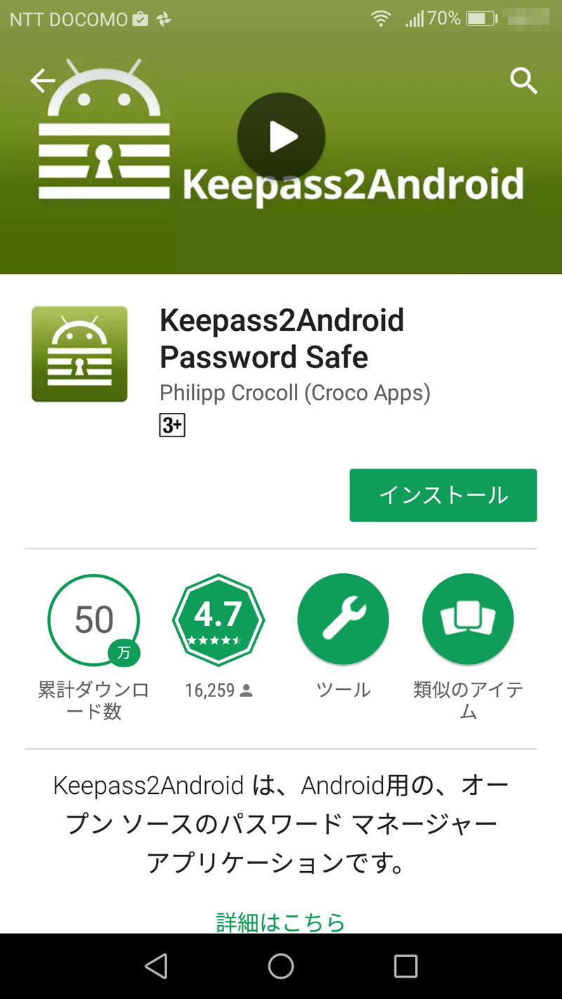 dropboxではkeepassのデータを持たせているので、これをスマホでも見れるようにする。 各種IDの一元管理が出来て便利。でも流出したら一発でアウト。ほんとうに重要なやつは、パスワードを直接に記載はせずに、 連想で記載しておき、ダダ漏れにはならないように気をつける。でも自動入力ができなくなるのでちょっと不便。