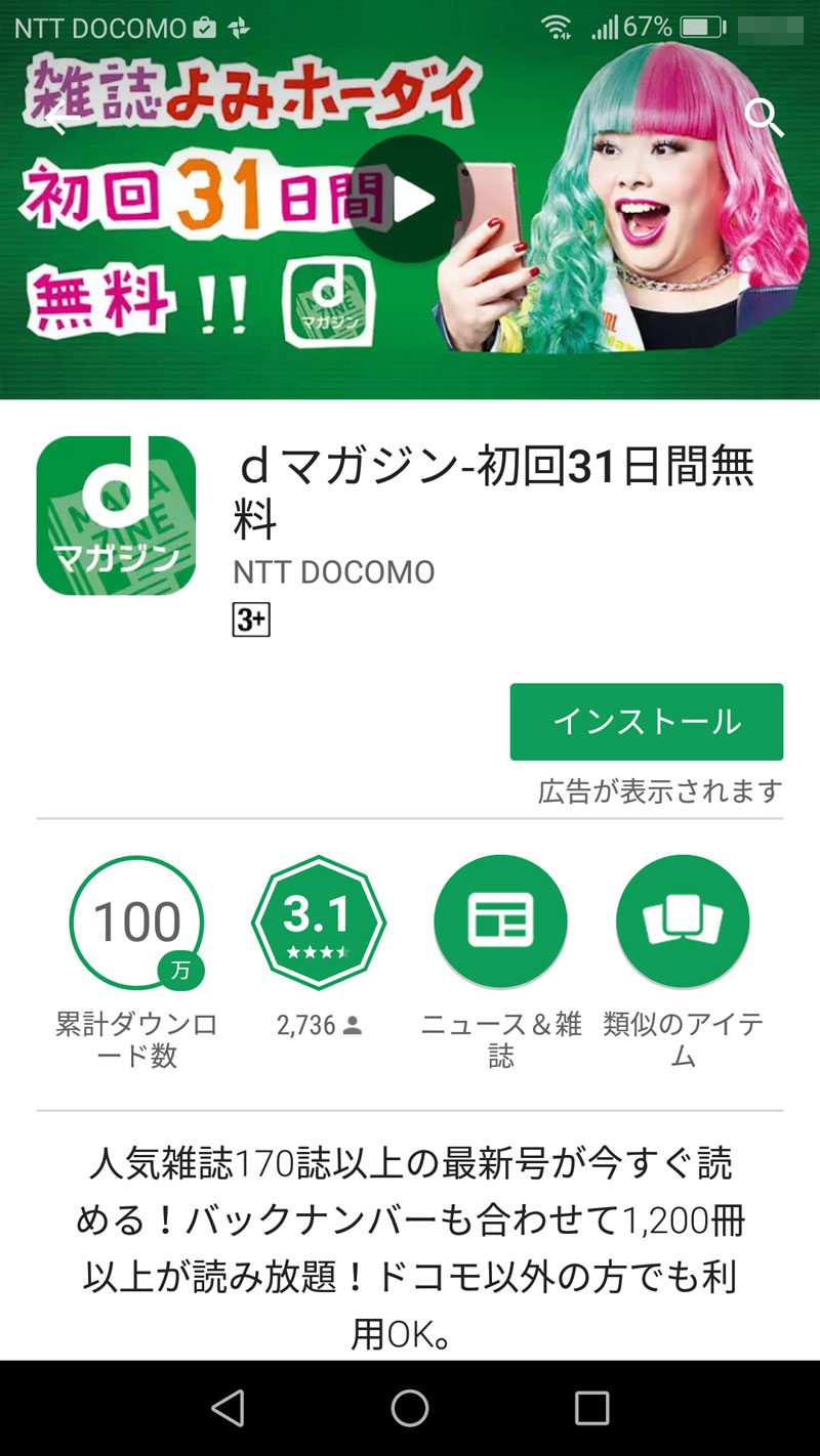 dマガジン。最近ネットで読める雑誌が増えてきたが、そのうちの一つ。ほかをよく調べていないが、 dマガジンは1つのアカウントで5台までインストール可能なので、自分と嫁と家のiPadと色々使えて便利。 PCでも見れるとのことだが、ディスプレイで見ると粗が見えて読みづらく、iPadが一番見やすい。