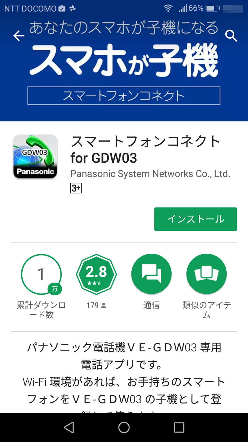 家の電話をパナのこの機種としたので、アプリを入れておく。これでスマホが家の電話機の代わりになるのだが、 そもそも家の電話を使うことは少なく、そろそろ携帯だけで十分になりそう。とはいえ有線の電話はそれなりに災害に強いとかメリットはある気がするので、とりあえずキープ。ちなみにあまりアプリの出来は良くないので、 結局電話子機を使用している。