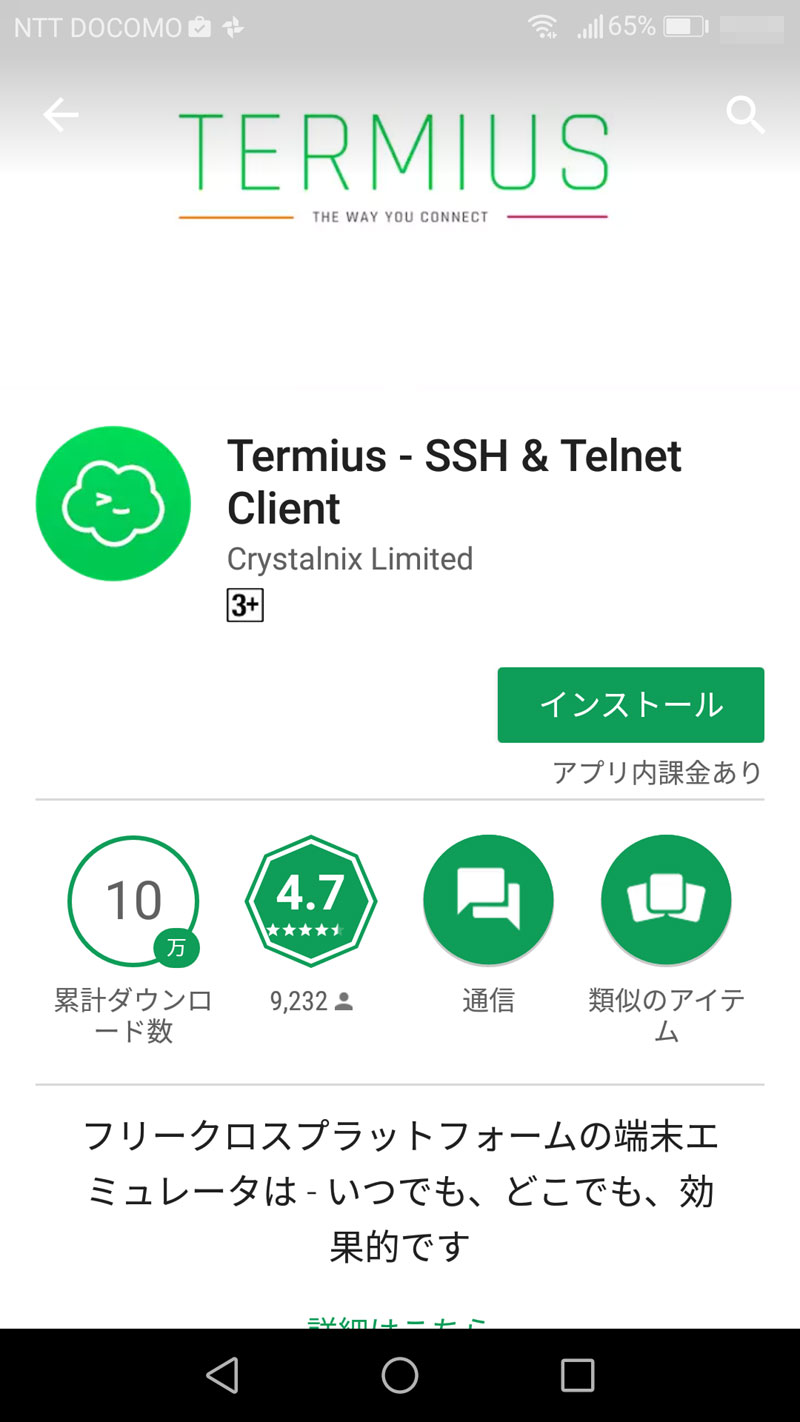 termius。昔は違う名前だったような。sshクライアントアプリ。ssh接続するときに使用する。 でもスマホ画面でのキーボード入力は画面も狭いしキーボードも小さいし大変。