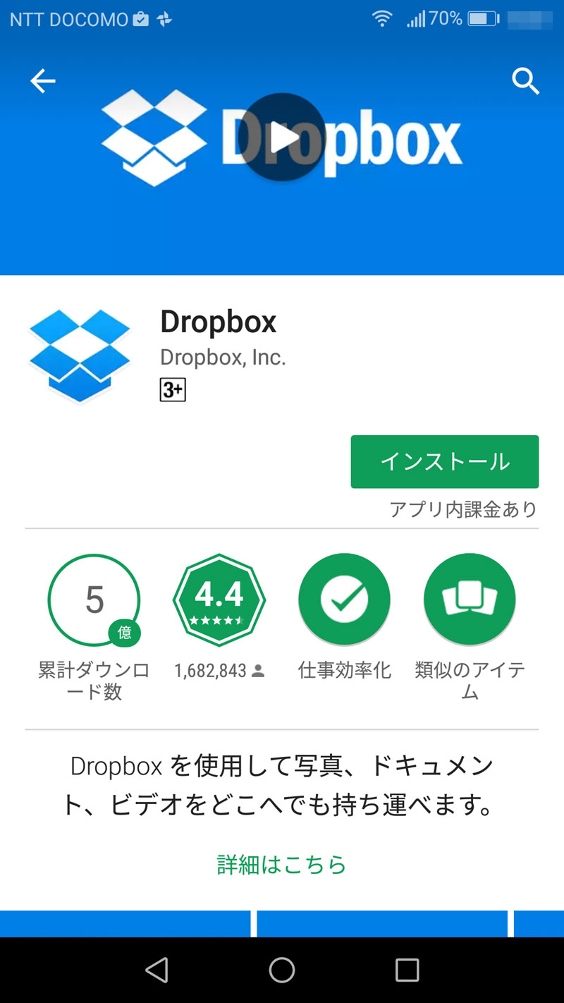 dropboxはLINEの引越し作業で使用したので、インストールしたが、それ以外のツール系アプリを入れておこう。 googleドライブは、デフォルトでインストールされていた。google系はやはり、いろいろと初期インストール済み。 そもそもバックアップの同期もここを使ってるのか?