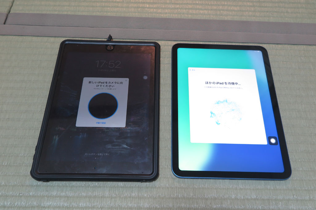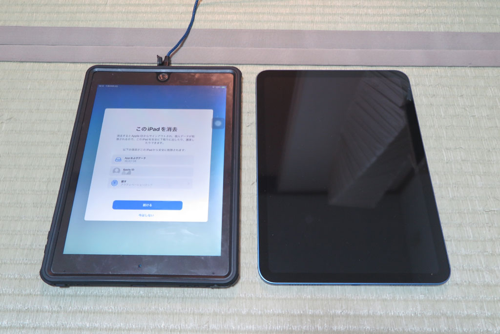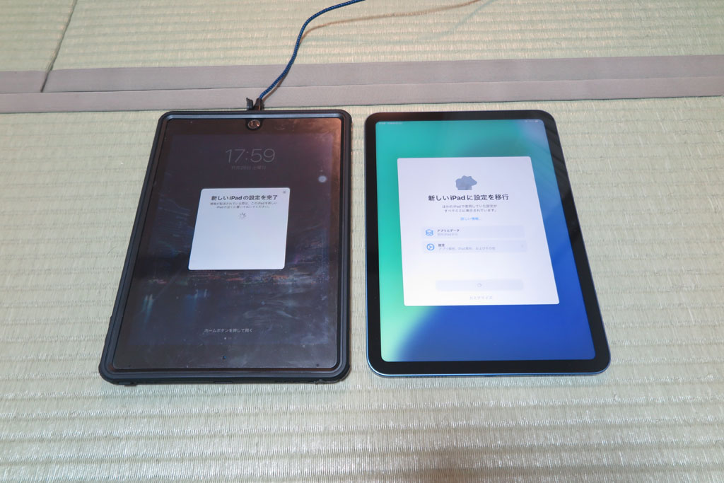 1時間くらい放置していたら、作業は終わっていたようだ。古いほうのiPadには廃棄向けの消去画面が出ているが、もう少し使用したいので、内容消去はせずこのままとしておく。